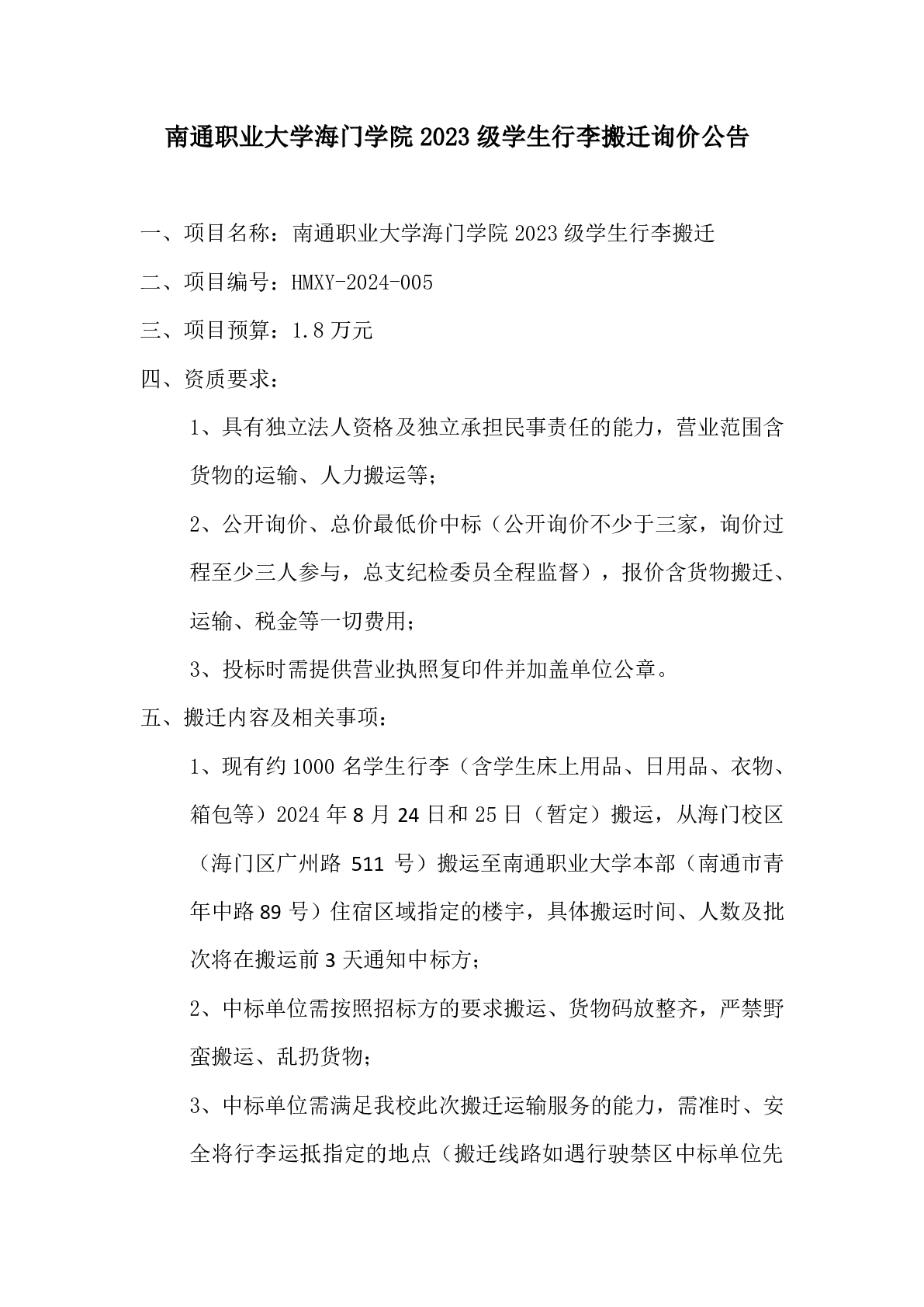 bv1946伟德官网2023级员工行李搬迁询价公告