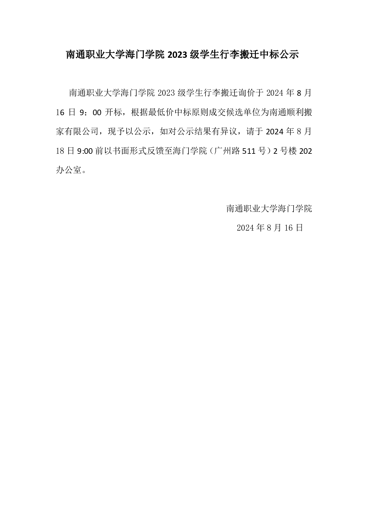 bv1946伟德官网2023级员工行李搬迁中标公示