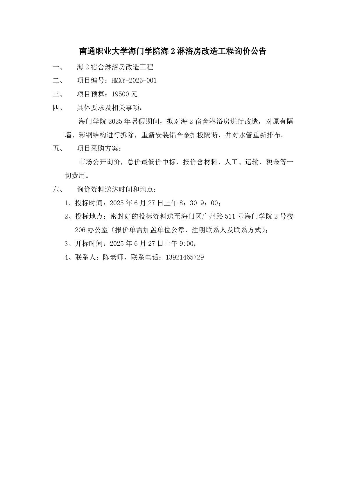 bv1946伟德官网海2淋浴房改造工程询价公告